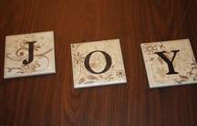 Turn ordinary ceramic tiles into stylish coasters and trivets using stamps, stencils and ink. Choose either 4 coasters or two trivets. Spell out the word of your choice. Additional tiles can be added for an additional fee. All necessary supplies are provided for this class.